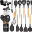 Juego de utensilios de cocina con 33 piezas. Juego de espátula de utensilios de cocina de silicona antiadherente con soporte y mango de madera.