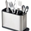 Elegante escurridor de cubiertos de acero inoxidable a prueba de huellas dactilares, cuenta con una base ligeramente inclinada que permite el drenaje del agua a través de la abertura que se encuentra incorporada. También pueden ser desmontadas sus partes para una rápida y fácil limpieza. Además cuenta con separadores para organizar tenedores, cucharas, cucharas de te y cuchillos.